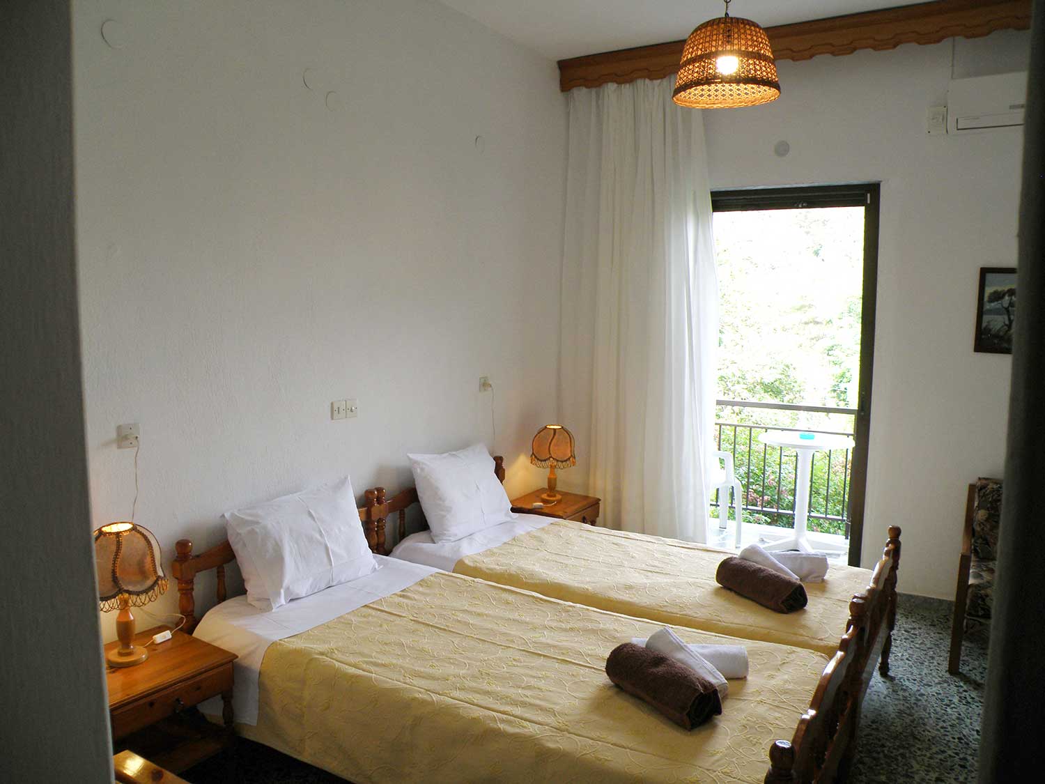 Τα δίκλινα δωμάτια στο ισόγειο της Villa Dimitra είναι μια πρακτική και ευχάριστη επιλογή για όσους αναζητούν απλή και άνετη διαμονή στη Θάσο. Διαθέτουν τις βασικές παροχές που χρειάζεστε για ξέγνοιαστες μέρες στη Σκάλα Ποταμιάς, ενώ η πρόσβαση στον κήπο και η χαλαρή ατμόσφαιρα της μονάδας κάνουν την καθημερινότητα ακόμα πιο ξεκούραστη.