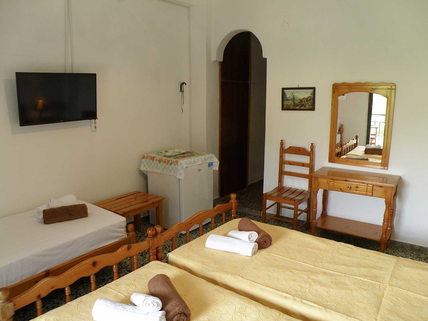 Τα τρίκλινα δωμάτια του ισογείου στη Villa Dimitra προσφέρουν άνετο χώρο για μικρές οικογένειες ή παρέες φίλων που θέλουν να απολαύσουν τη Θάσο χωρίς υπερβολές, αλλά με φροντίδα και ηρεμία.